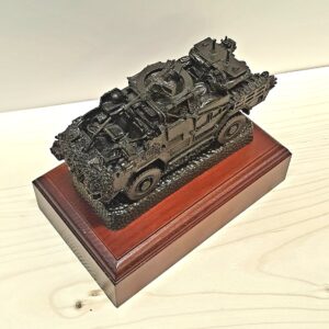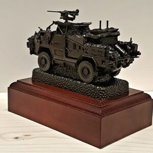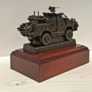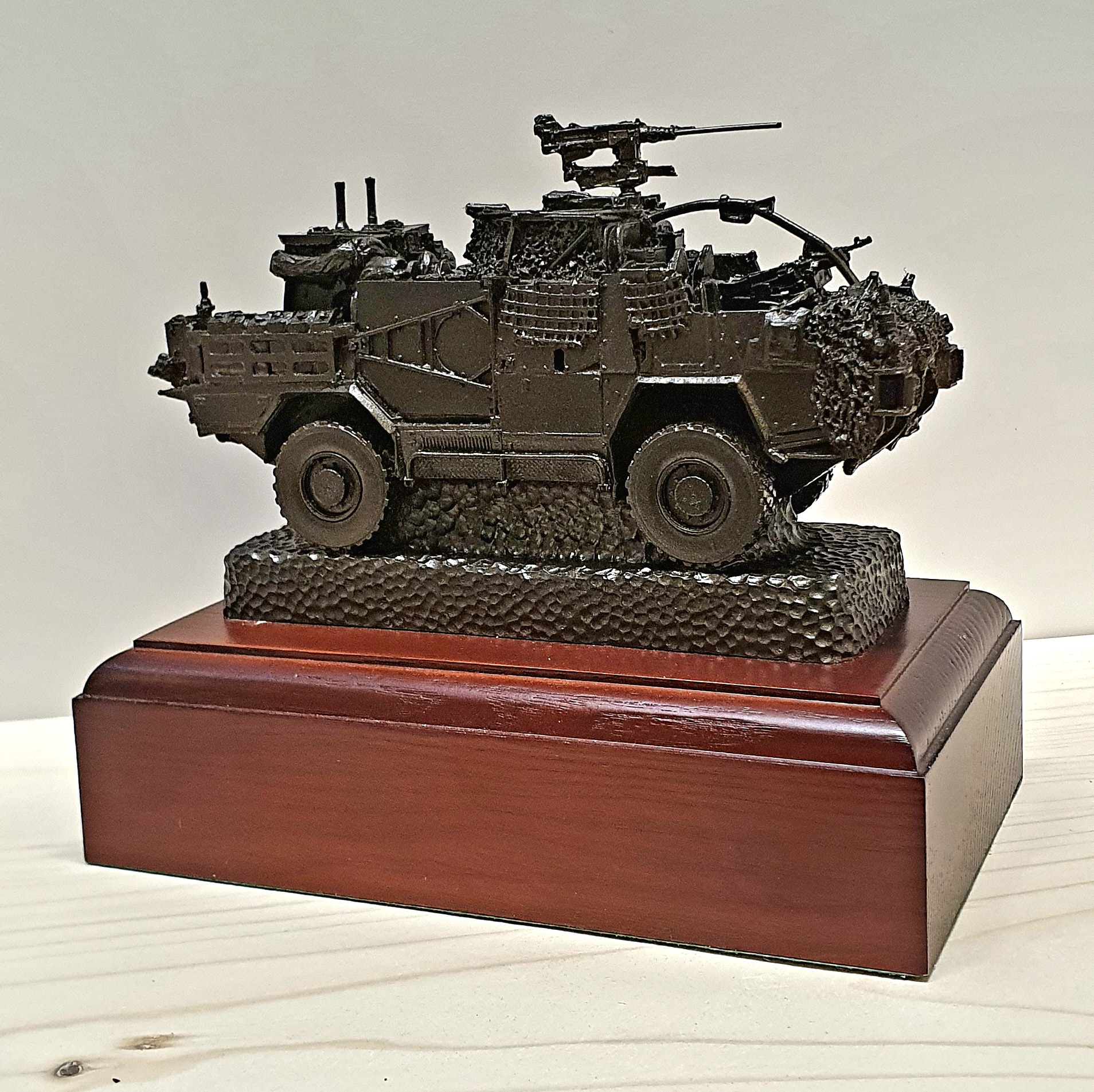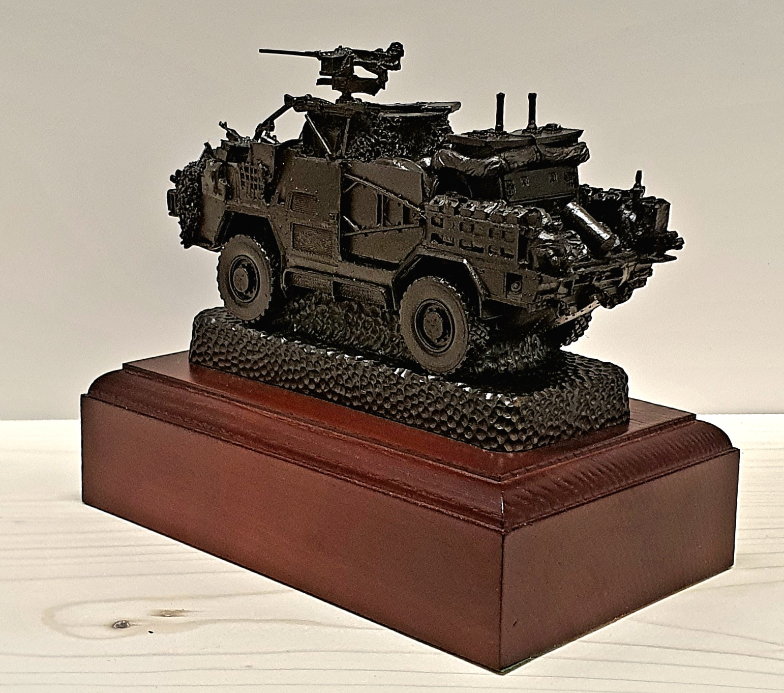 Cold cast bronze resin model, on wooden base, depicting a Jackal MWMIK.