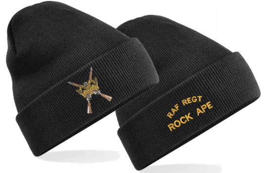 Cuffed beanie hat with RAF Regiment motif available in various colours
